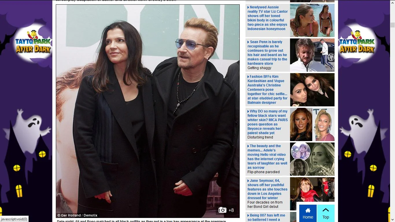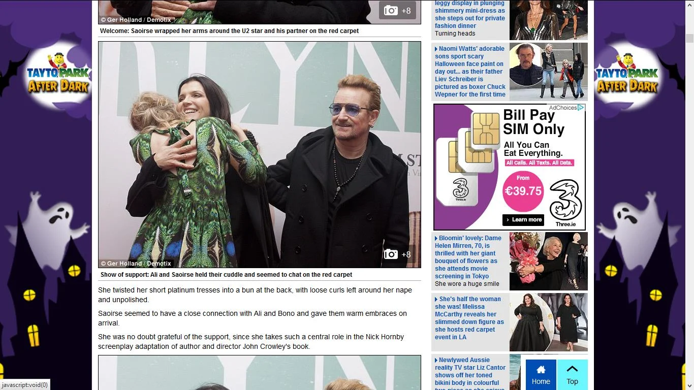 Three pictures I took at the Irish premiere of Brooklyn in Dublin featuring Bono, his wife Ali Hewson and actress Saoirse Ronan - published in The Mail Online. (October 2015)